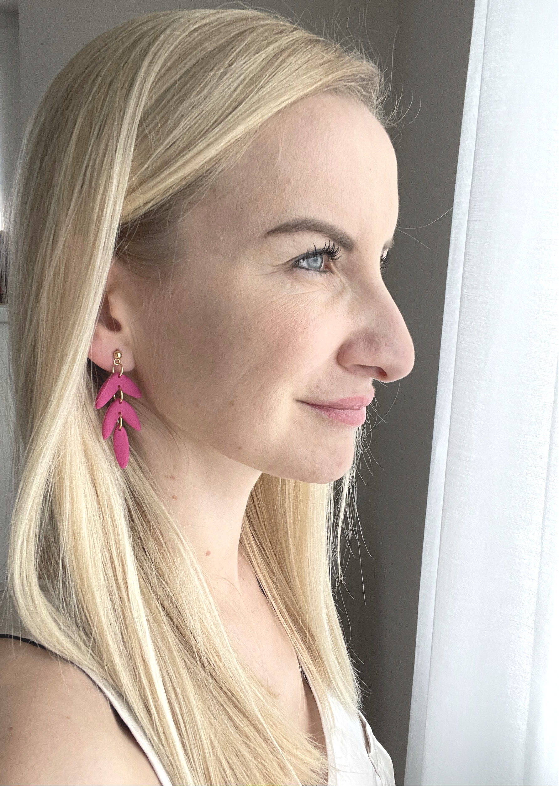 Diese pinken Blattohrringe sind ein exzellentes Accessoire zu frischen frühlingshaften & sommerlichen Outfits oder auch als Eyecatcher zu festlichen Anlässen geeignet.