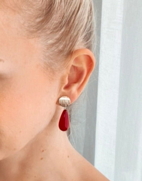 Ein gebürsteter, eleganter Edelstahlohrstecker (vergoldet, auch in SILBER erhältlich) veredelt mit einer weinroten Preciosa Tropfenperle. Diese Ohrringe sind dein perfekter Begleiter im HERBST & das ganze Jahr hindurch.