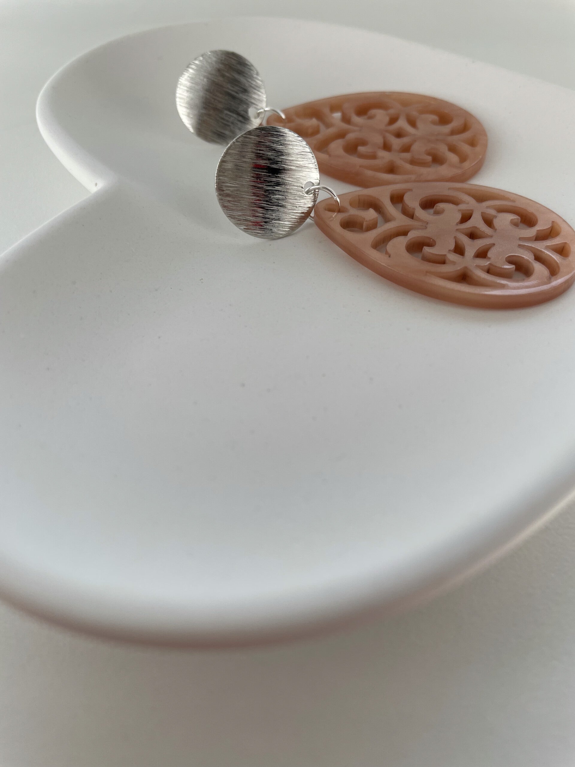 Elegante Ornamentohrringe aus leichtem Resin in schönen Herbstfarben mit nickelfreiem Ohrstecker aus Messing/Edelstahl wahlweise in Gold oder Silber.