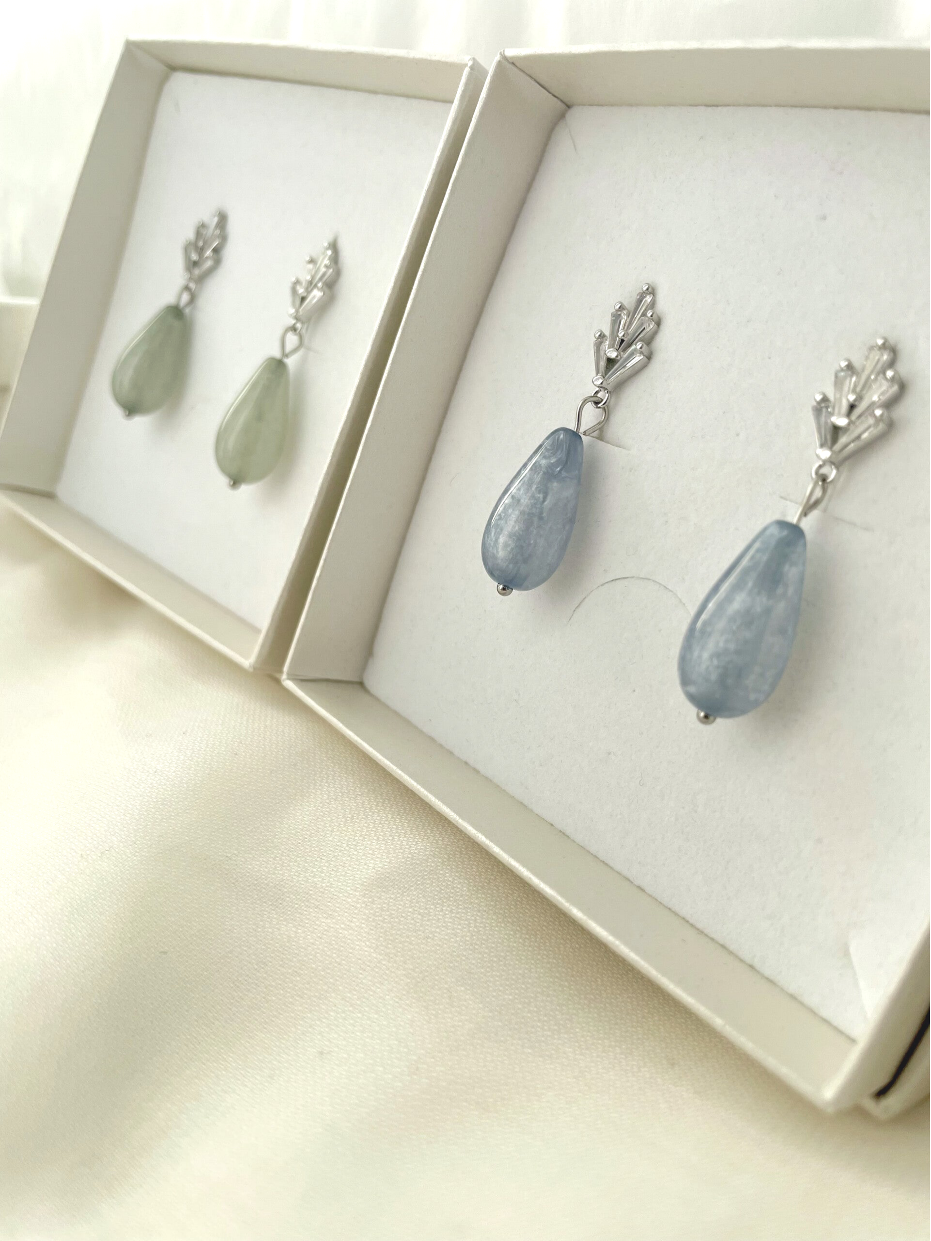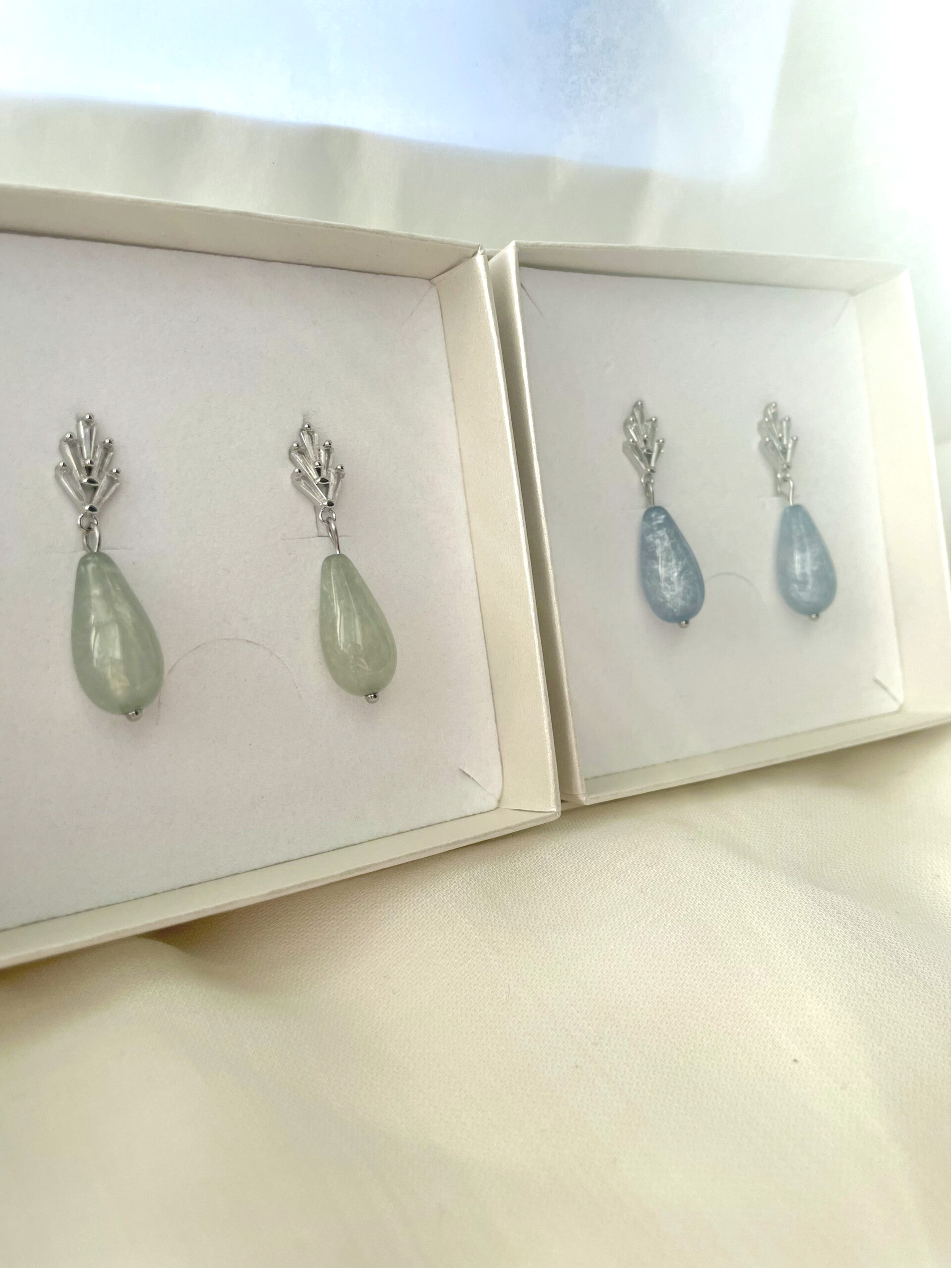 Zart grün farbene ✨Ohrringe LIVIA✨ mit silbernem Zirkoniaohrstecker und einer Preciosa Tropfenperle🩷.