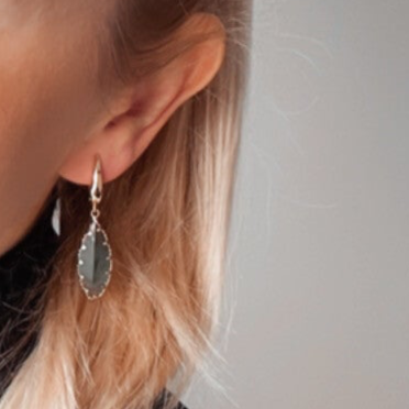 Elegantes Schmuckset aus funkelnden Glassteinen in braun oder hellgrün bestehend aus Hängeohrringen und einem 18k vergoldeten Ohrstecker mit Clipverschluss.