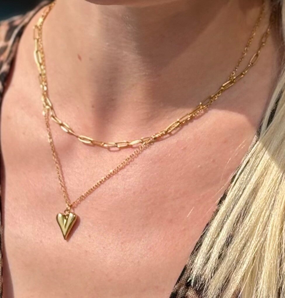 Trendige Doppelkette Alicia aus vergoldetem Edelstahl (nickelfrei) mit Spezialbeschichtung, lässt sich selbst an heißen Tagen im kühlen Nass, egal ob am Meer oder im Pool, nicht im Stich.
