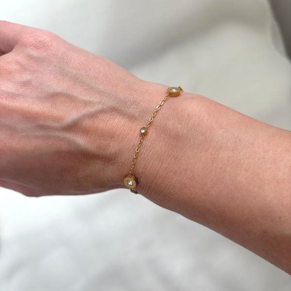 Filigranes Armband mit Zirkoniasteinen veredelt, dazu passend gibt es die Ohrstecker GIANNA im selben Stil.