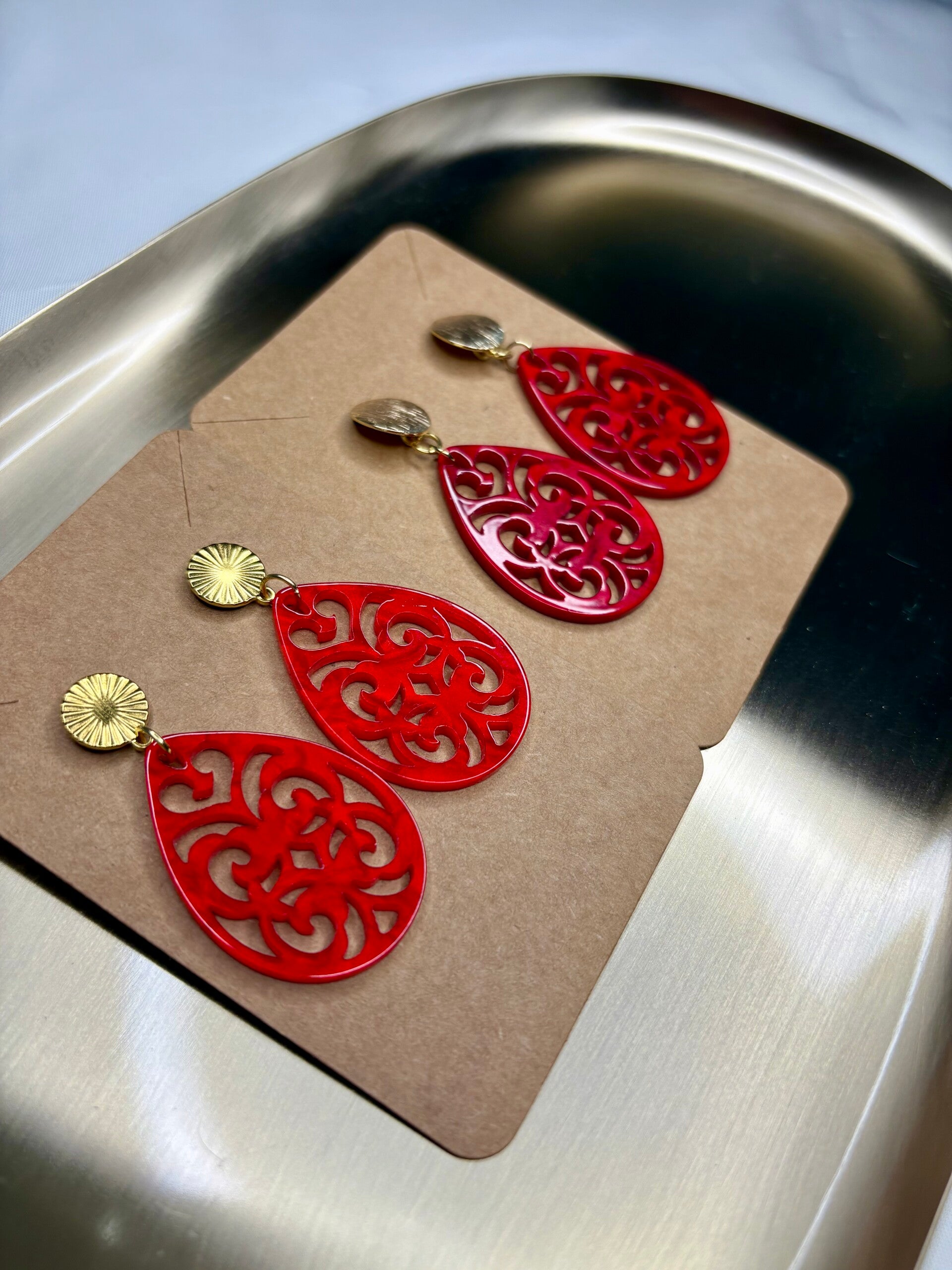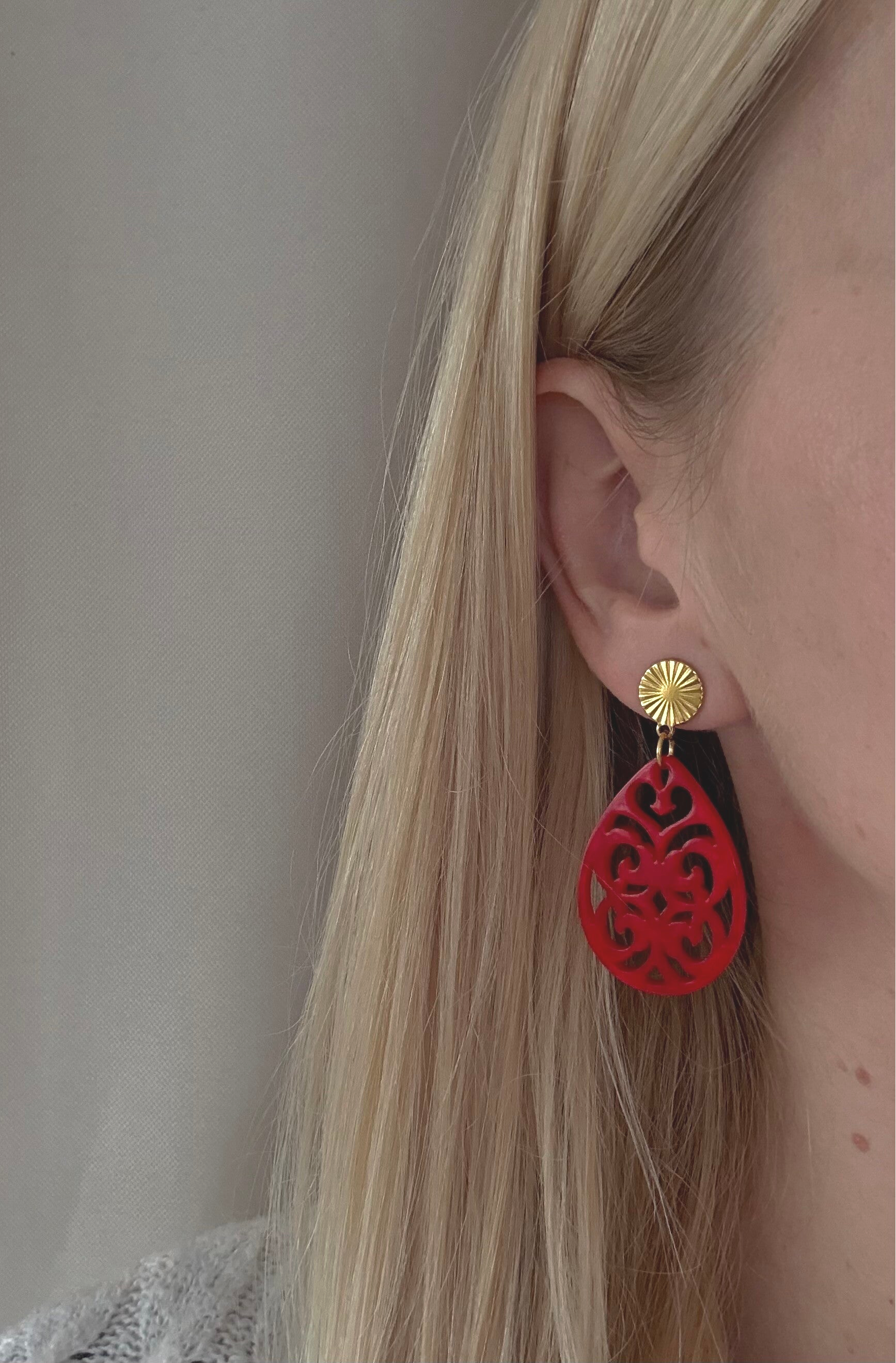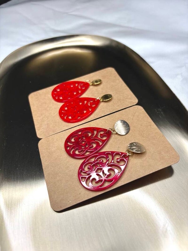 Elegante Ornamentohrringe aus leichtem Kunstharz in schönen Herbstfarben mit Ohrstecker aus Messing/Edelstahl wahlweise in Gold oder Silber.